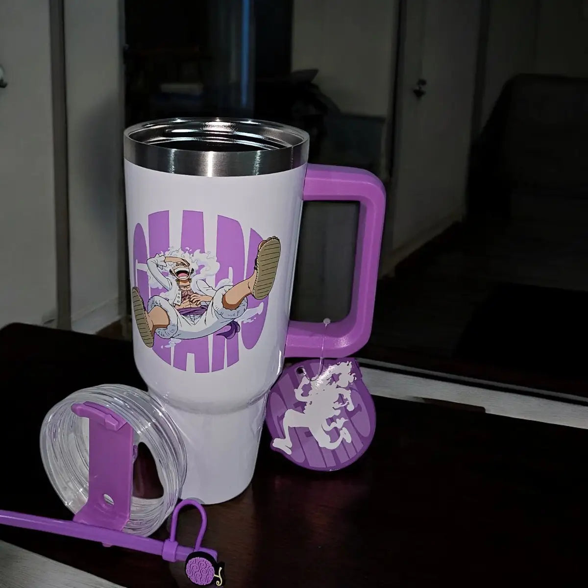 Diseño: Inspirado en Luffy transformado en su Gear 5, con tonos morados y detalles vibrantes.