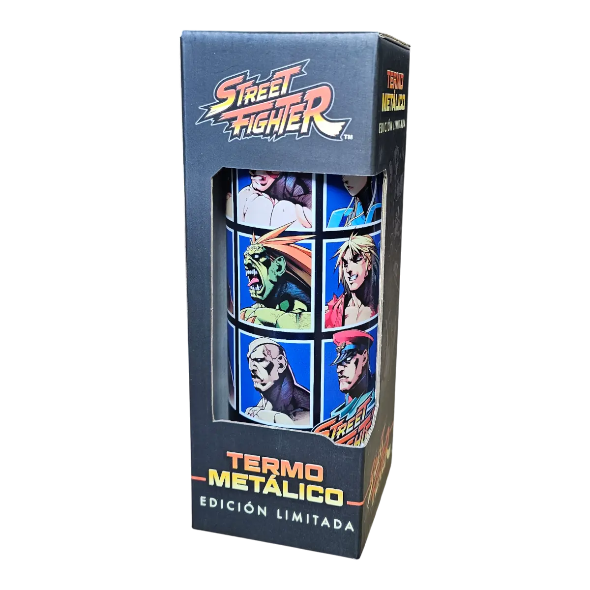 En Paraíso Geek recordamos la emoción de poner una moneda en la máquina y tener que decidir rápido: ¿Ryu? ¿Chun-Li? ¿Blanka? Revive esa época dorada con este Termo Metálico de Street Fighter, diseñado para los veteranos del combate.